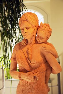 Anfang 2000 war ich gezwungen, mich mit geänderten Lebensumständen zu arrangieren. In dieser schwierigen Zeit habe ich meine Liebe zum Element Erde (Ton) entdeckt. Im Laufe der Zeit kristallisierte sich heraus, dass sich alles, was ich in Ton gestalten wollte, verselbständigte – es entstanden immer Frauengesichter oder Körper. Ich habe diese Entwicklung akzeptiert und angenommen. Vor einigen Jahren entdeckte ich das Malen wieder und nutze das Spiel mit den Farben, das Verarbeiten verschiedener Materialien, um ein Bild oder eine Collage entstehen zu lassen.