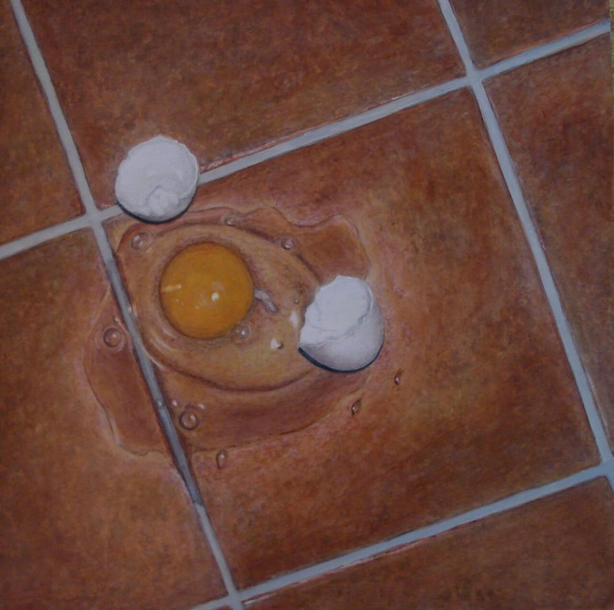In der Küche, Kasein auf Kreidegrund, Holz, 2008, Bodenbild